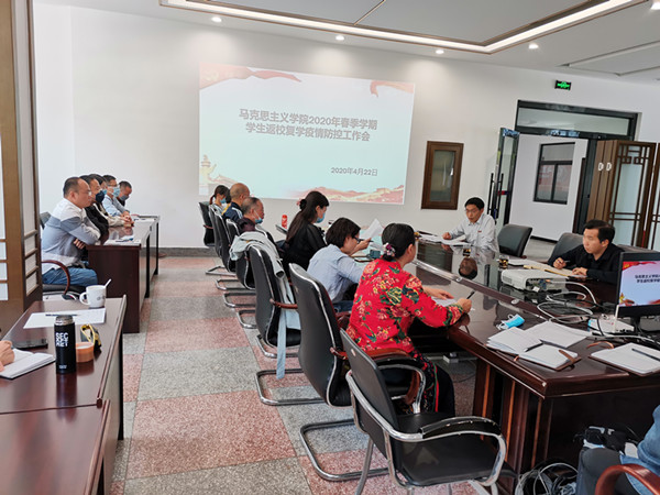 2020年4月22日上午,马克思主义学院组织召开本学期学生返校复学疫情防控工作会,全体教师参加了会议,会议由赵永胜院长主持。