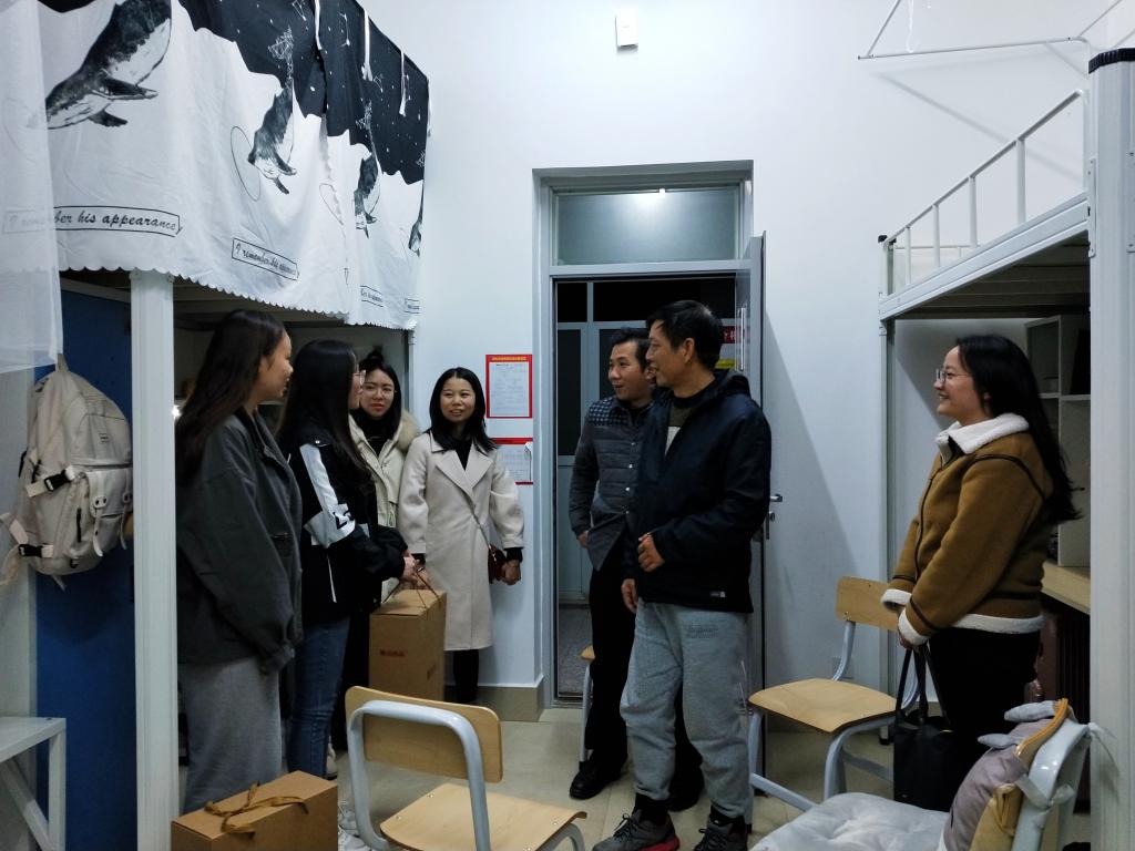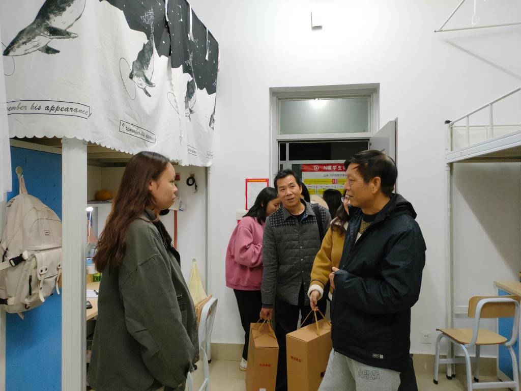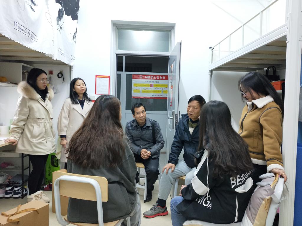 2020年12月8日晚,学校党委书记张学武在马克思主义学院党委书记田志忠、辅导员马丽娟、团委书记何敏以及班主任杨方的陪同下前往学生宿舍N幢,看望来自盐津县的杨艳和砚山县的金寒琦两名家庭困难学生,把党的关怀和学校的温暖送进学生心中。