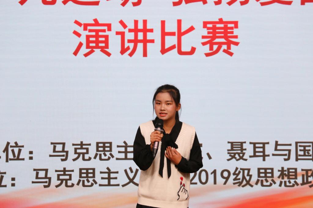 爱国是中华民族的优良传统,是中华民族生生不息,自立于世界民族之林的强大精神动力。为纪念 “一二·九”学生爱国运动85周年,进一步深化青年学生的爱国主义情怀,教育引导广大青年学生牢固树立听党话跟党走的理想信念,把青年学生强烈的爱国热情转化为勤奋学习,勇担使命,争当先锋的实际行动,马克思主义学院于2020年12月12日晚19点在大学生活动中心举行“纪念一二·九运动,弘扬爱国主义精神”主题演讲比赛。本次比赛由马克思主义学院主办,2019级思想政治教育2班承办,马克思主义学院院长赵永胜老师、副院长邱国成老师、党支部书记段妍智老师、团委书记何敏老师,以及数学与信息技术学院张远老师莅临现场指导。