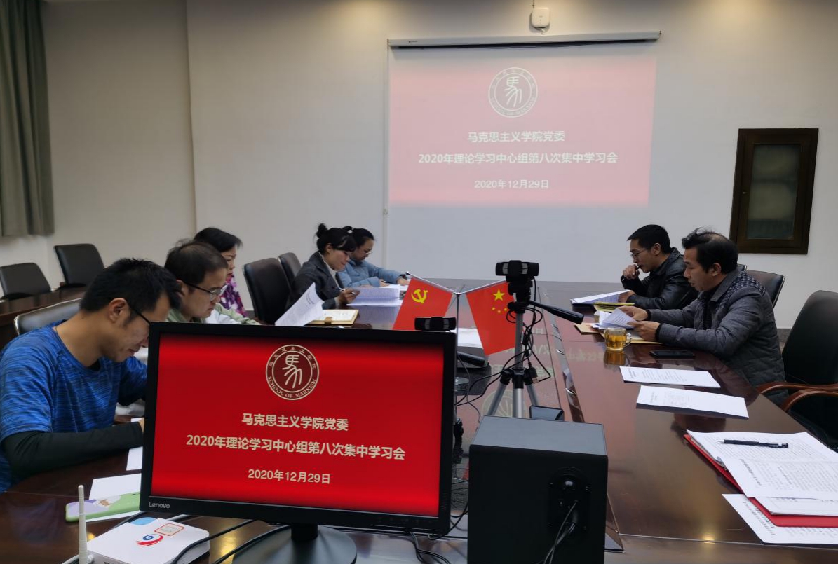 为认真开好2020年度二级党委班子民主生活会,12月29日,马克思主义学院党委在学院办公楼一楼会议室召开2020年理论学习中心组第八次集中学习会。会议由党委书记田志忠主持,学院党委领导班子成员、办公室主任、专职组织员及党支部书记参加会议。
