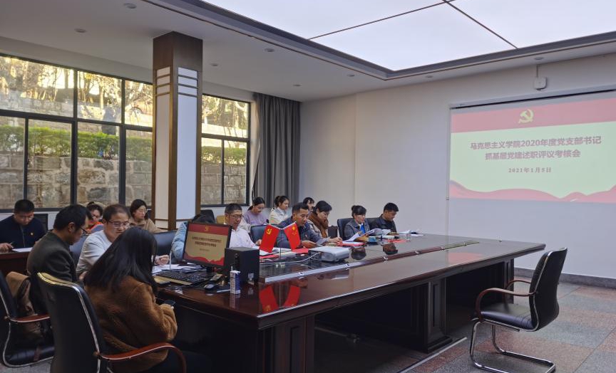 为贯彻落实全面从严治党要求,切实提高基层党建工作制度化规范化水平。根据学校党委的工作部署要求,2021年1月5日,马克思主义学院党委在学院一楼会议室召开2020年度党支部书记抓基层党建述职评议考核会。会议由学院党委书记田志忠同志主持,学院党委班子成员、教工和学生党支部书记、专职组织员、师生党员代表共计19位同志参加会议。