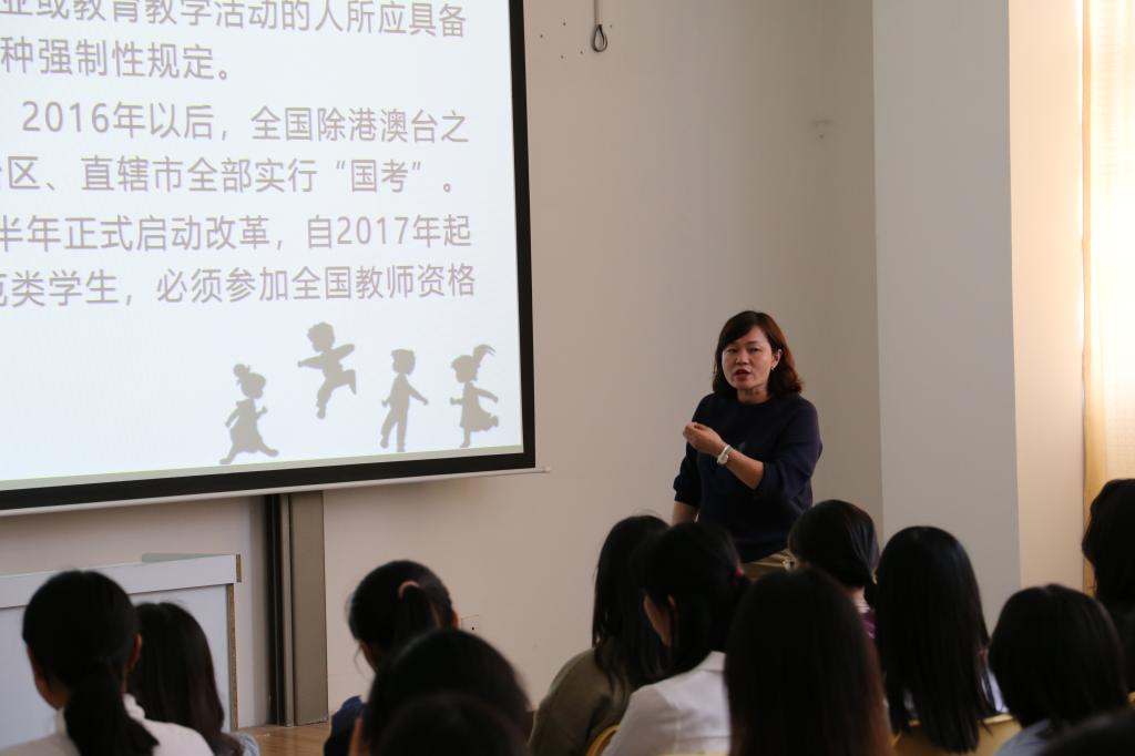 院长助理杨少英老师从教师资格证考试的来由、教师资格证考试的重要性以及往年教师资格证考试通过的情况分析当前的形势,强调教师资格证是教师职业准入的标识,也是师范生成长为人民教师的标志。作为一名新时代的师范生,要有教师教育情怀,要对教师职业无限敬畏,严肃认真地对待教师资格证考试,积极行动,心无旁骛地备考,用现在的努力铸就未来的辉煌,以实际行动实现自己的心中的梦想。