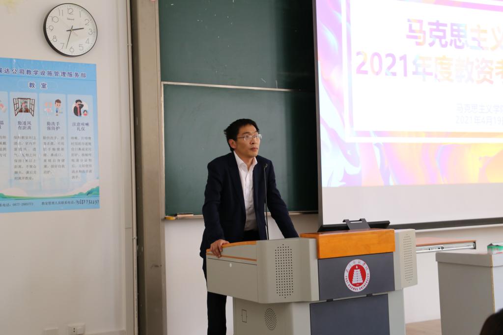 2021年4月19日下午,马克思主义学院在14教105阶梯教室召开思想政治教育专业教师资格证考试动员大会。出席本次会议的有马克思主义学院院长赵永胜教授、马克思主义学院院长助理杨少英老师,马克思主义学院2018、2019级班主任李桂仙、王锦涛、周鑫老师。马克思主义学院思想政治教育专业2018级、2019级全体本科同学参加会议。