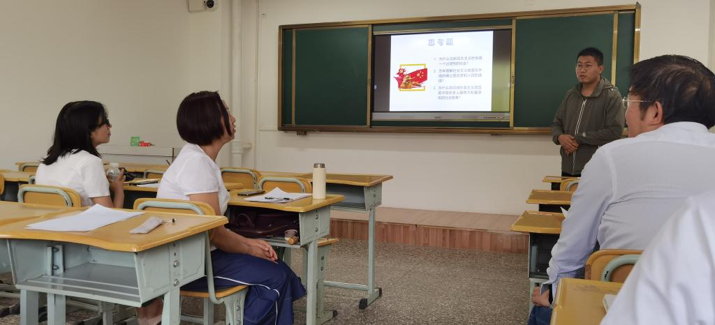 二是由周鑫老师、王锦涛老师分别进行章节授课,其余老师共同评课。周鑫老师主讲了《为中国奋斗》一章,从中国共产党争取和平民主的斗争、国民党发动内战和解放区军民的自卫战争两部分进行了授课,内容丰富、语言幽默、互动性强。王锦涛老师主讲了《社会主义基本制度在中国的确立》一章,从新民主主义向社会主义过渡的开始、社会主义道路:历史和人民的选择、有中国特点的向社会主义过渡的道路三部分进行了授课,语言流畅、资料详实。教研室其余教师课后进行点评和指导,提出了中肯的修改意见,张连英老师进行了总括性发言。