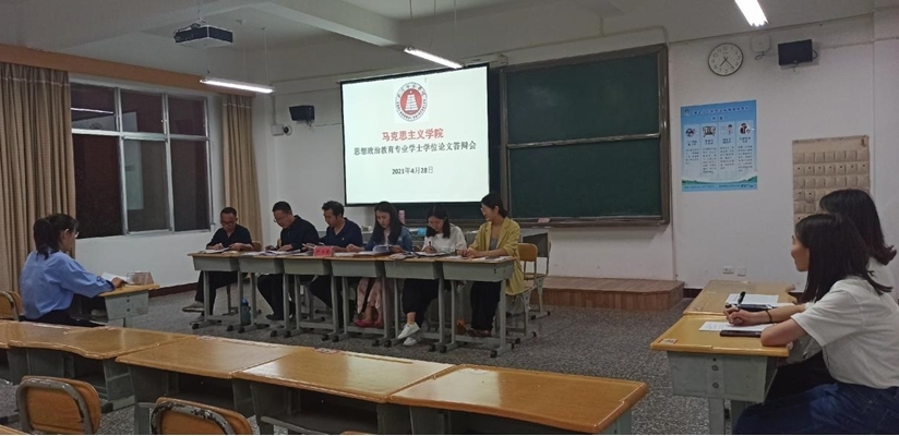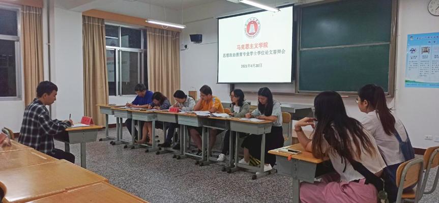 为进一步提高教育教学水平,确保毕业生论文质量稳步提升。历时近8个月,通过论文选题、开题、撰写、修改、审查、查重、交叉评阅等环节,按照学校和学院关于开展2021届毕业生论文答辩的有关要求,4月28日晚,马克思主义学院在第十三教学楼举行2021届思想政治教育专业毕业论文答辩会。本次论文答辩共分五个小组进行,共有61名毕业生参加论文答辩,30名答辩委员、5名答辩秘书、10名学生志愿者全程参与。