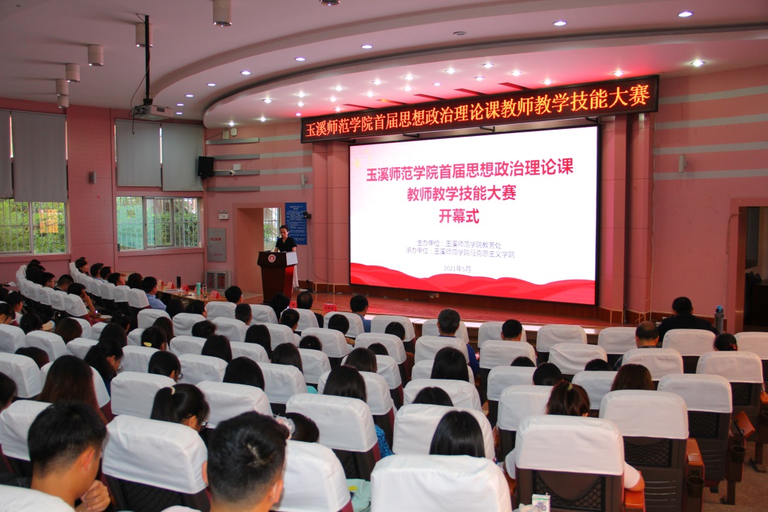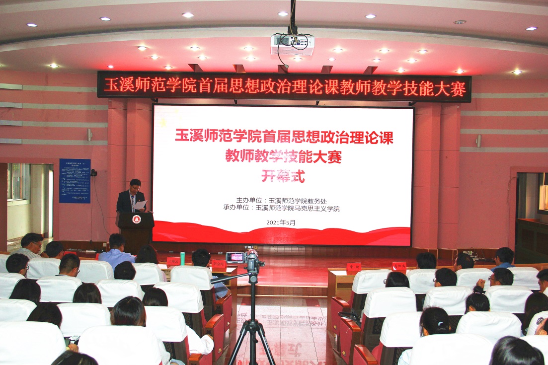 为了贯彻落实习近平总书记在学校思想政治理论课教师座谈会上的重要讲话精神,切实提高思想政治理论课课堂教学质量和教师教学水平。2021年5月9日,玉溪师范学院首届思想政治理论课教师教学技能大赛在科学讲堂拉开序幕。