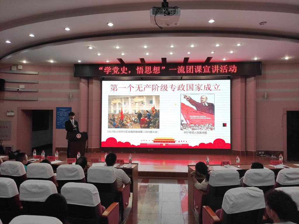 为深入贯彻党中央关于开展党史学习教育和团中央关于开展“学党史、强信念、跟党走”学习教育的工作要求,全面贯彻落实习近平总书记在党史学习教育动员大会上的重要讲话精神,共青团作为党缔造和领导的青年政治组织,要把党史学习教育作为发挥党的助手和后备军作用的重大责任,作为团员青年思想武装和团的思想建设的重要内容,引导广大团员青年厚植爱党、爱国、爱社会主义的情感,让红色基因、革命薪火代代传承。2021年6月7日,由共青团玉溪师范学院委员会主办、共青团玉溪师范学院马克思主义学院委员会承办的“学党史,悟思想”一流团课宣讲活动在科学讲堂举行。学校团委书记罗辉、工作人员王震洋,马克思主义学院党委书记田志忠、党委委员段妍智、辅导员马丽娟以及教师代表赵红梅、李铁、王锦涛和全院200余名共青团员参加了本次活动。
