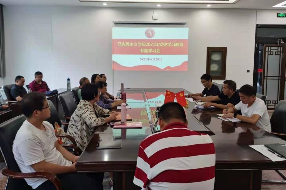 为认真落实省委教育工委党史学习教育第六巡回指导组第一轮巡回指导反馈意见,全面推进二级学院党委开展党史学习教育取得实效。6月28日,马克思主义学院在学院办公楼一楼会议室召开2021年党史学习教育专题学习会。会议由学院党委副书记、院长赵永胜主持,全体教职工参加会议。