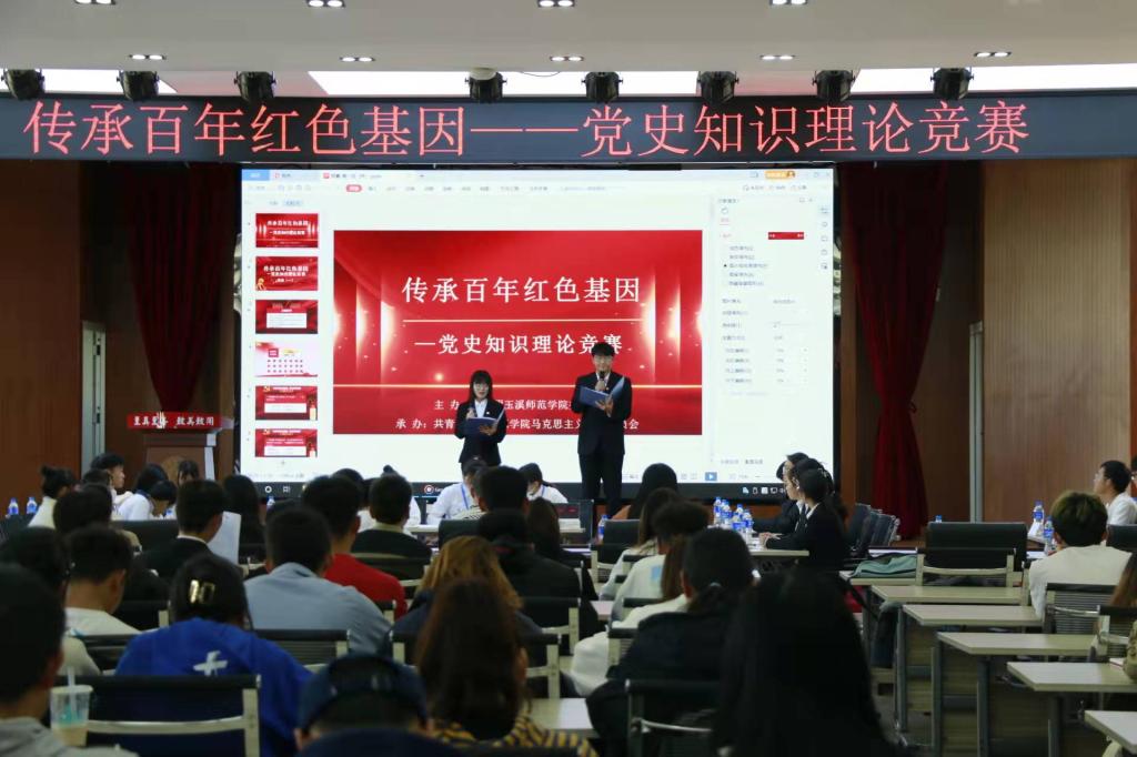 为庆祝建党100周年,丰富党史教育形式,从百年伟大奋斗历程中汲取继续前进的智慧和力量,进一步提高我校广大青年学子的思想政治素质,增长党性知识。2021年12月20日下午15:00,由共青团玉溪师范学院委员会主办、共青团玉溪师范学院马克思主义学院委员会承办的以“传承百年红色基因”为主题的党史知识理论竞赛在大学生活动中心学生会堂成功举办。