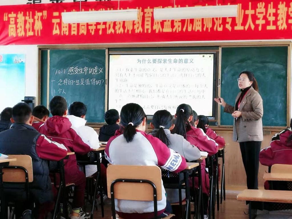12月20日至21日,由云南省高等教育学校教师教育联盟主办,丽江师范高等专科学校承办的“高教社杯”云南高等学校教师教育联盟第九届师范专业大学生教学技能竞赛决赛在丽江举行。全省12所具有师范专业高校的83名学生参加了本次决赛。此次决赛包括思想政治、历史、地理三个学科。经过校内选拔,马克思主义学院2018级思想政治教育班的马娅娴、侯佳参加决赛。
