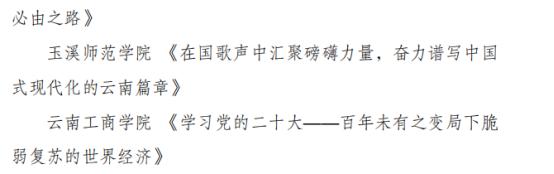 2023年6月,云南省委教育工委开展“学习贯彻习近平新时代中国特色社会主义思想”精品党课评选活动,我院教师段妍智报送的《在国歌声中汇聚磅礴力量 奋力谱写中国式现代化的云南篇章》专题党课荣获三等奖。