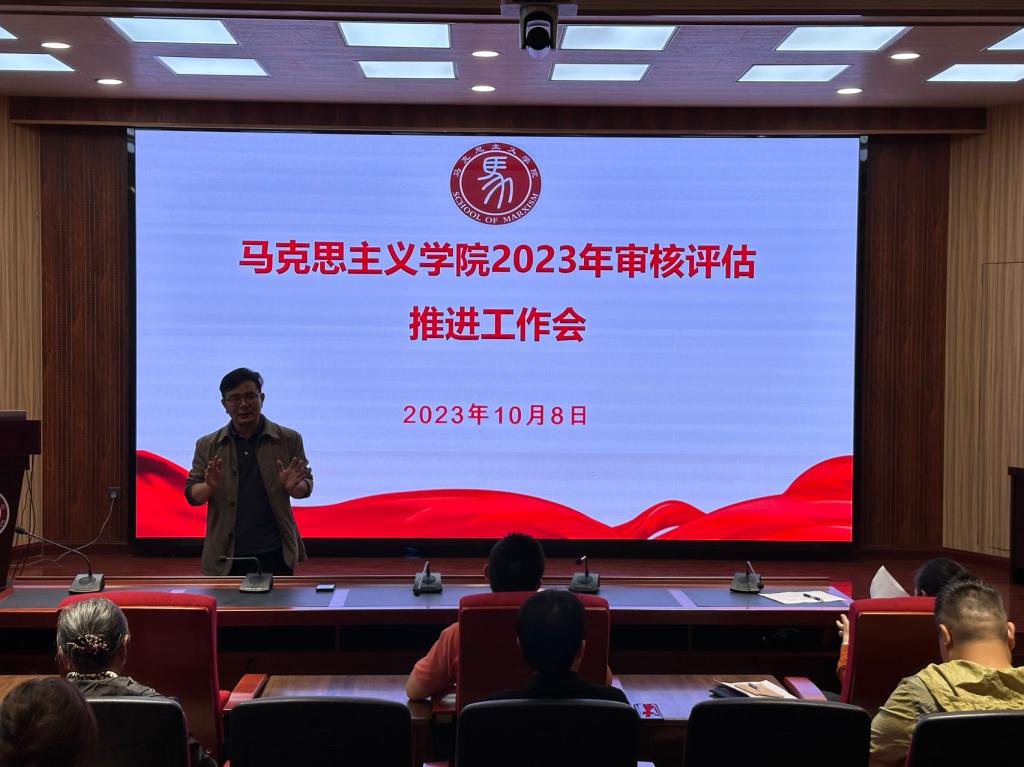 新一轮本科教育教学审核评估,是对我院教育教学质量的一次全面检验,是总结办学经验、查找存在问题的良好契机,也是凝心聚力全面深化教育教学改革、推动学院高质量发展的重要抓手。为深入做好评建工作,学院于2023年10月8日在马克思主义学院四耳报告厅召开教育教学审核评估工作推进会。