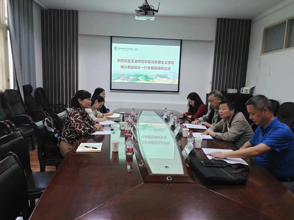 2023年10月16日,马克思主义学院杨少英副院长一行赴华中师范大学马克思主义学院交流学习。华中师范大学马克思主义学院董俊敏处长、邵彦涛副院长、陈华洲教授、胡田庚教授、平凡副教授分别出席座谈会。