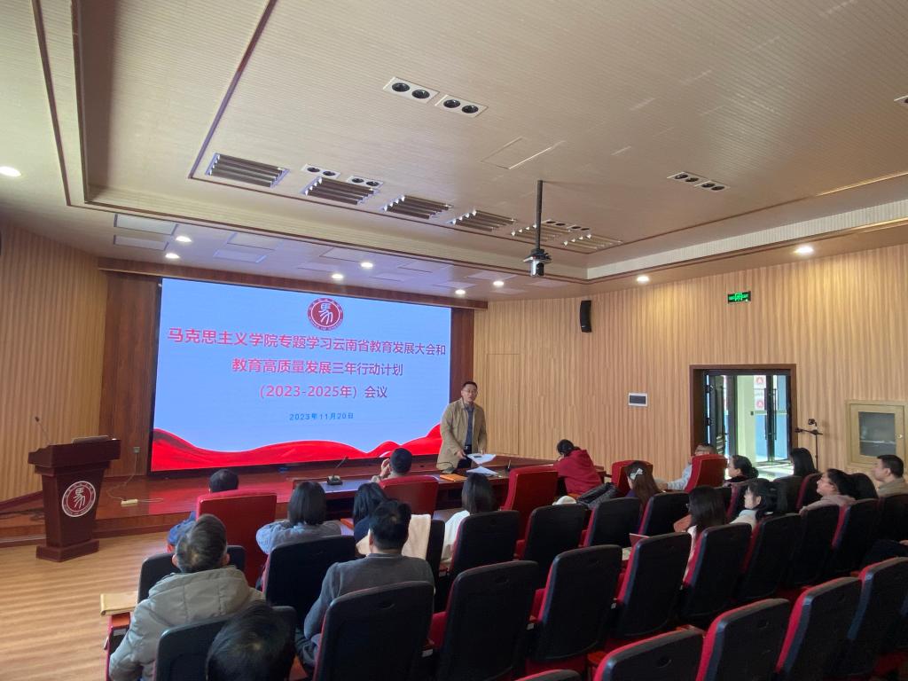 为提高全院教职工对云南省教育高质量发展三年行动计划部署要求的把握程度,全面推进学院教育教学高质量发展,经学院党政研究,于2023年11月20日召开全院教职工大会,专题学习和安排部署落实高质量发展三年行动计划。