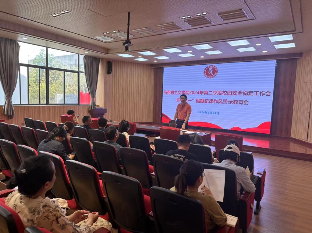 2024年4月29日下午,马克思主义学院在四耳报告厅召开2024年第二季度安全稳定工作会暨“五一”纪律作风警示教育会。会议由学院党委书记罗辉主持。