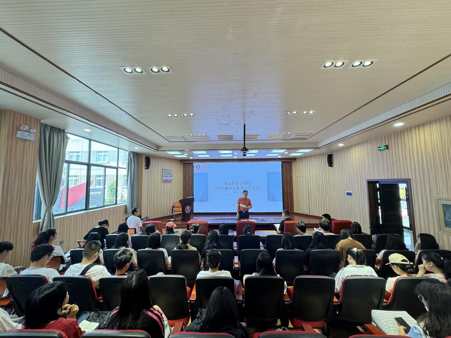 2024年5月22日上午,学院在四耳报告厅召开2024届毕业生离校教育工作推进会暨毕业生思政课。思政专业2024届毕业生、辅导员、教学秘书、科研秘书、团委书记、毕业班班主任参加。会议由学院党委书记罗辉主持。