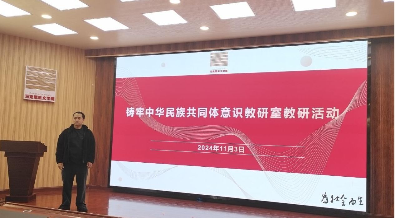 2024年11月3日,“铸牢中华民族共同体意识”教研室在马克思主义学院一楼四耳报告厅,举行了本学期第四次集体备课会。本次集体备课会的主题是:如何把习近平总书记在全国民族团结进步表彰大会上的讲话精神融入教学、如何把习近平总书记回信勉励普洱民族团结誓词碑盟誓代表后代精神融入教学。