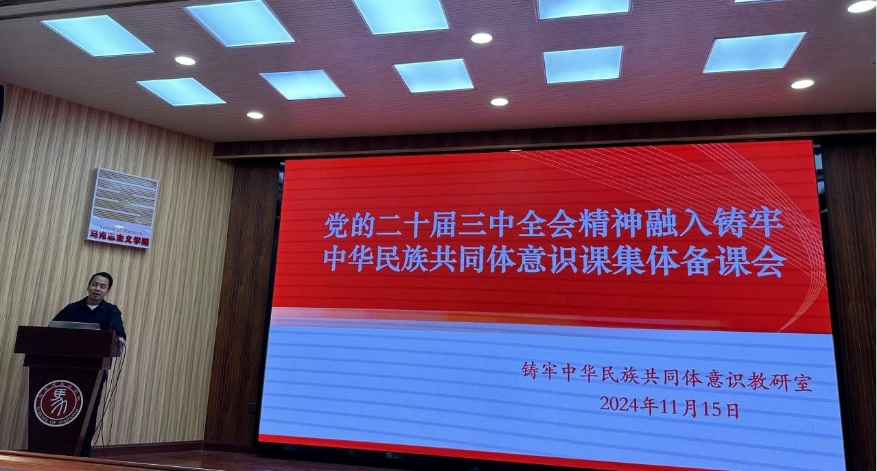 2024年11月15日,“铸牢中华民族共同体意识”教研室在马克思主义学院一楼四耳报告厅,举行了本学期第五次集体备课会。本次集体备课会的主题是:如何把党的二十届三中全会精神融入教学。