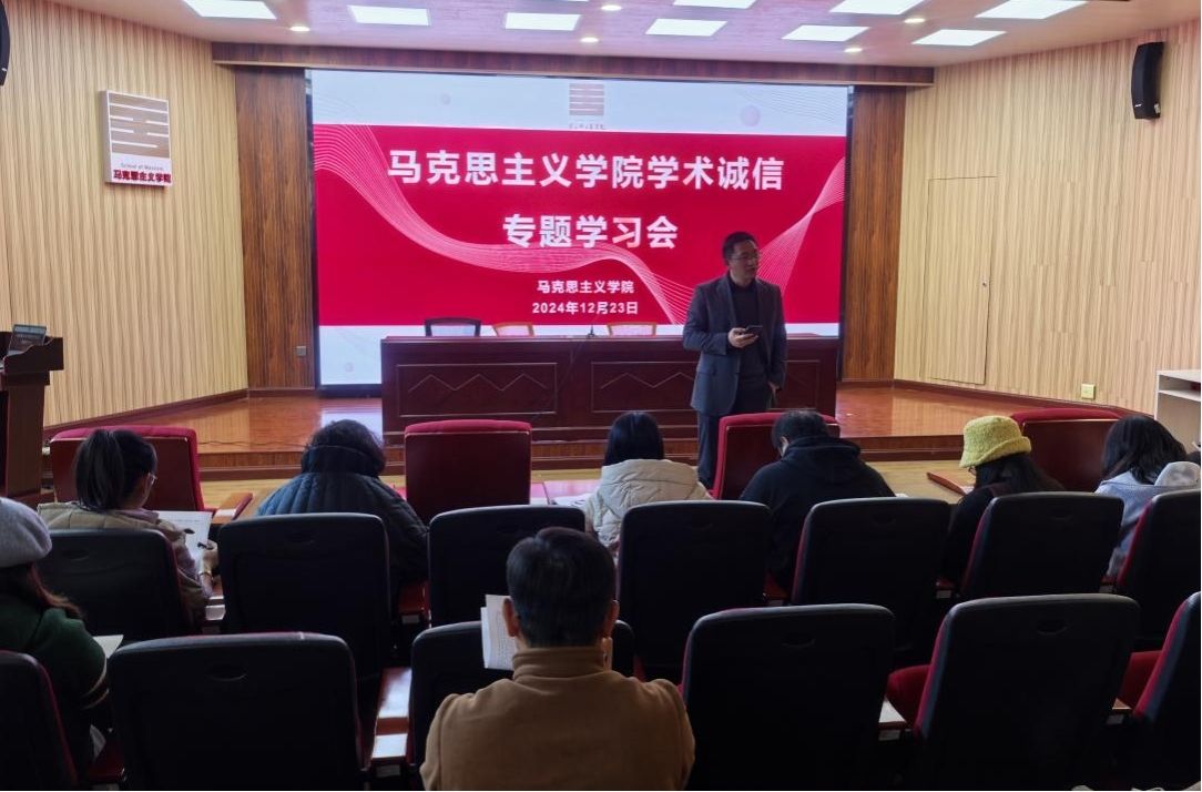为加强学术道德建设,营造良好的学术氛围,我院于2024年12月23日下午组织开展了“马克思主义学院学术诚信专题学习会”。会议由学院党委书记罗辉主持,学院全体教师及部分学生代表参加了此次学习会。