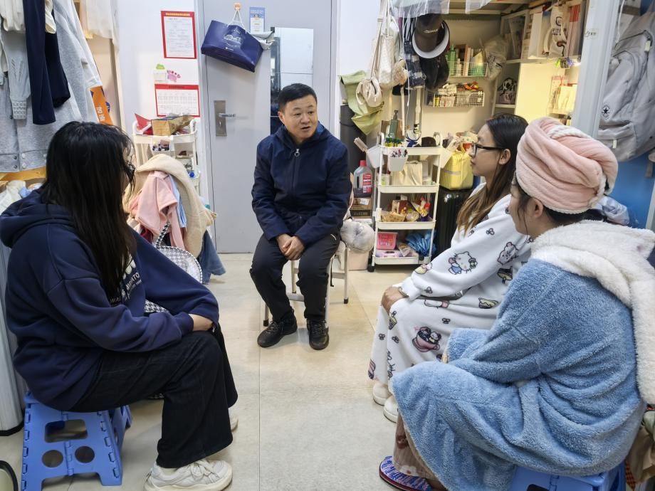 马克思主义学院积极落实上级关于“‘一站式’学生社区综合管理模式建设”的通知精神,以“一站式”学生社区建设为契机,提升学院党建和思想政治工作系统化、精准化、科学化水平;马院教师常态化走访学生宿舍,开展“师生面对面”互动,走访老师与学生进行交流,关心学生的学习生活情况,鼓励同学们努力学习,做好人生规划,在服务实践中提升专业素养,争做新时代有为青年。“一站式”学生社区建设作为学生教育管理模式改革的重要抓手,党建与思政工作协同推动“一站式”学生社区建设走深走实。