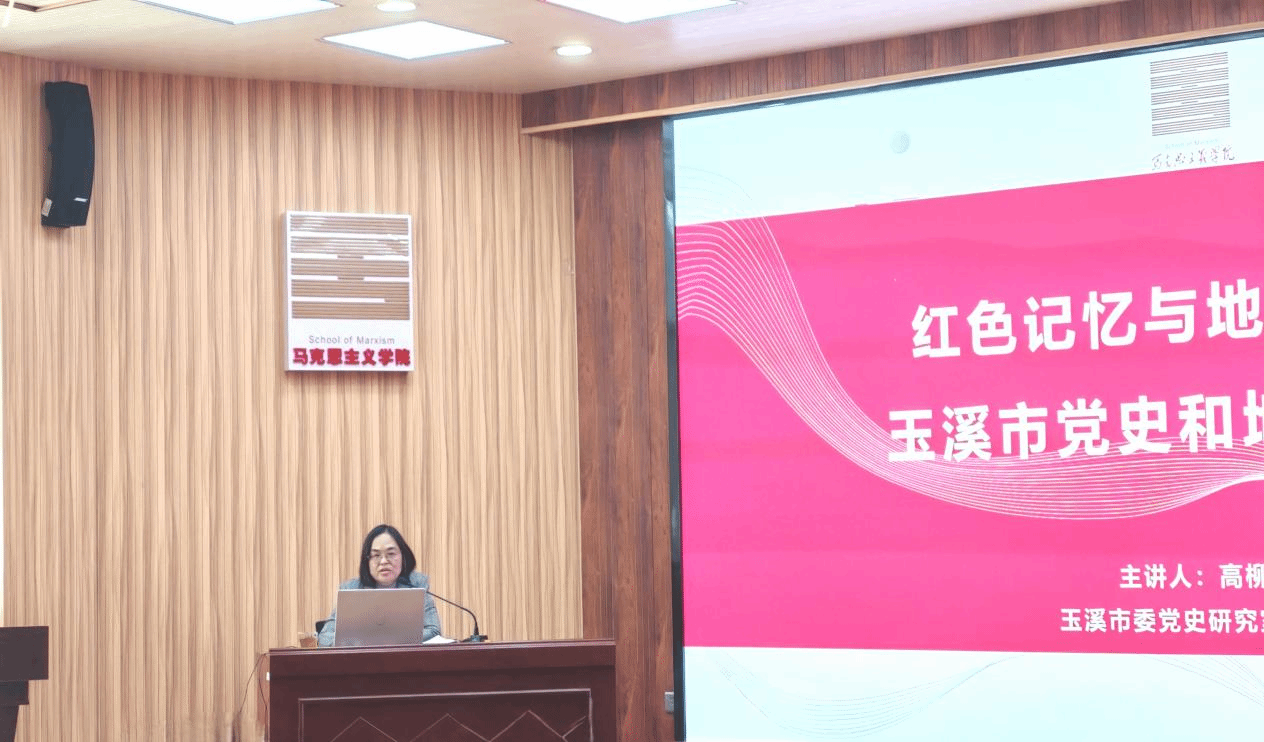 为切实提升思想政治教育专业学生的实践能力,推动理论与实践深度融合,2025年4月7日下午,我院举办思想政治教育专业2023级专业实习动员暨岗前培训活动,马克思主义学院副书记李铁莅临活动现场,2023级思想政治教育专业全体同学及班主任参加,本次活动由专业负责人刘丽明老师主持,培训以讲座的形式开展,邀请了玉溪市党史研究室副主任高柳莎和玉溪市聂耳纪念馆馆长许力娟担任主讲嘉宾。