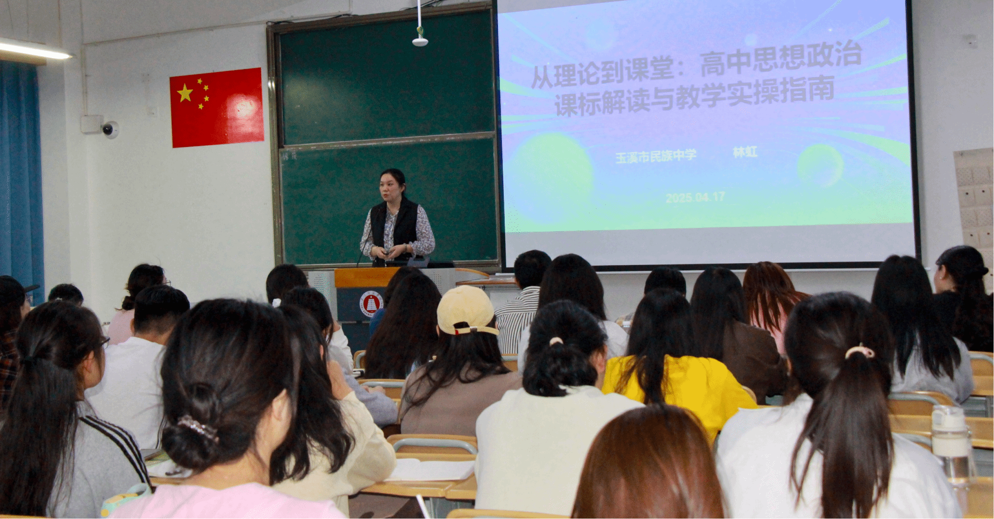 活动最后,林虹老师向马克思主义学院师生赠送了由其主编的书《高中思想政治课议题式教学典型课例研究》,该书的出版得到“兴滇英才支持计划教学名师”专项支持,书中收录了议题式教学典型课例研究的路径、议题式教学运用现状调查、议题式教学典型课例的教学设计、议题式教学典型课例研究报告等内容,为师范生提升议题式教学技能带来了强有力的指导。