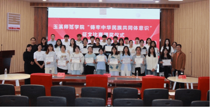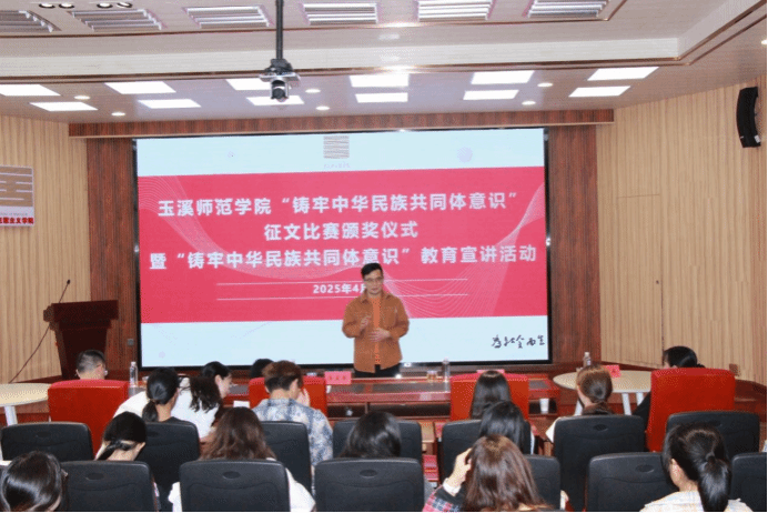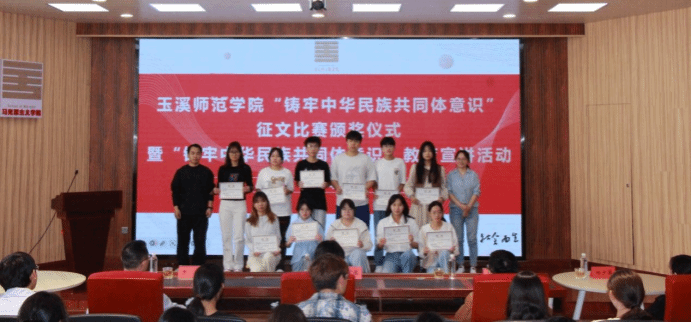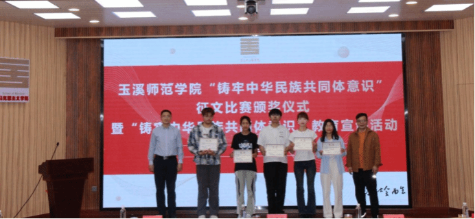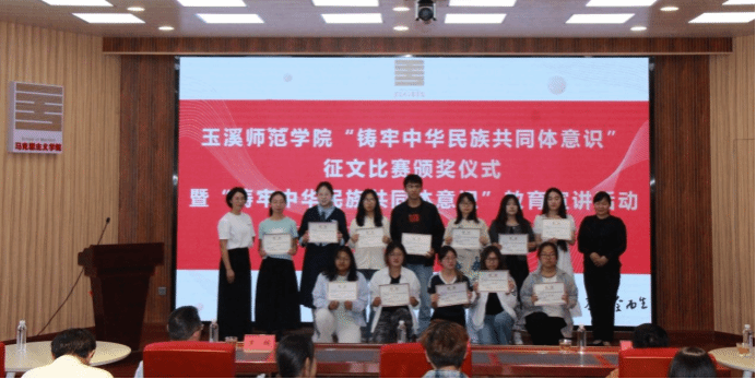 2025年4月17日16时,玉溪师范学院“铸牢中华民族共同体意识”征文比赛颁奖仪式暨“铸牢中华民族共同体意识”教育宣讲活动于四耳报告厅成功举办。马克思主义学院党委书记罗辉、院长时遂营、校团委副书记余家赛、马克思主义学院副院长杨少英、辅导员马丽娟及教师周鑫出席本次活动,并为获奖学生颁奖。