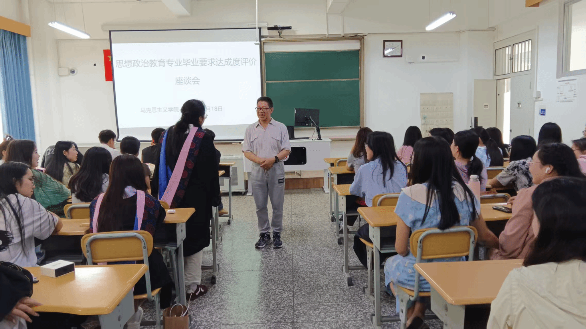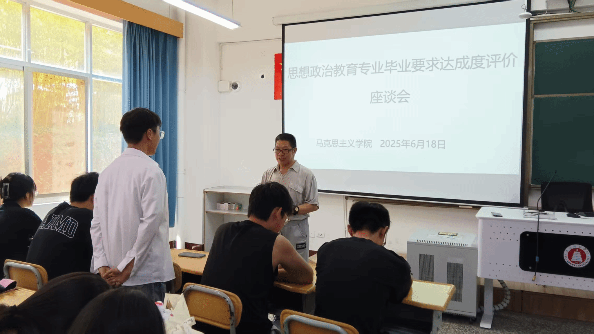 为科学评估思想政治教育专业人才培养成效,系统检验专业培养目标的实现程度,2025年6月18日,马克思主义学院在13教110召开2025届思想政治教育专业毕业要求达成度座谈会。学院副院长邱国成老师、思想政治教育专业课教师代表及全体毕业生参会,活动分为四个阶段,通过多维度评价方式全面检验学生培养成效。