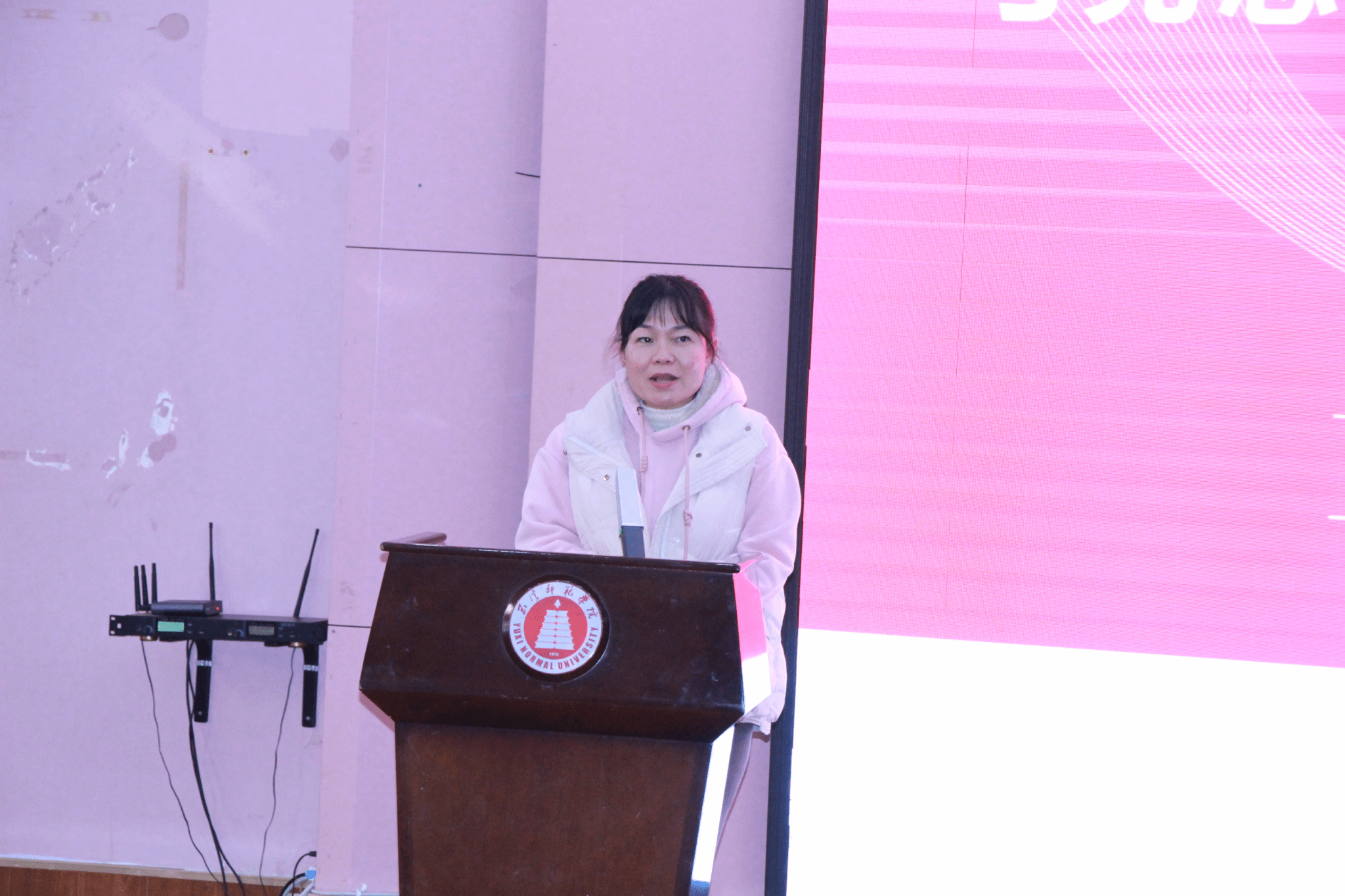 周鑫老师作为实习指导教师代表作总结发言,他肯定了同学们在实习中的成长,也指出他们存在的不足。杨少英副院长作领导讲话发言,她为学生圆满完成实习任务表示祝贺,同时对学生未来的发展提出殷切期待。