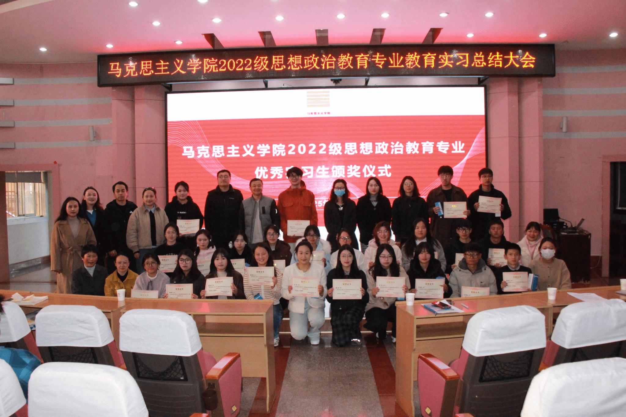 本次实习总结大会全面回顾和展示2022级思想政治教育专业学生的实习成果,分享实践经验,巩固专业所学,也为2023级同学提供宝贵的学习借鉴,对进一步提升思想政治教育专业人才培养质量起到积极作用。