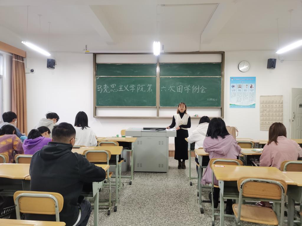 2020年11月2日17:30,马克思主义学院团委学生会在13教504室召开了第六次例会。本次例会由学生会主席冯德康主持,团委书记何敏老师和全体团学成员参加。