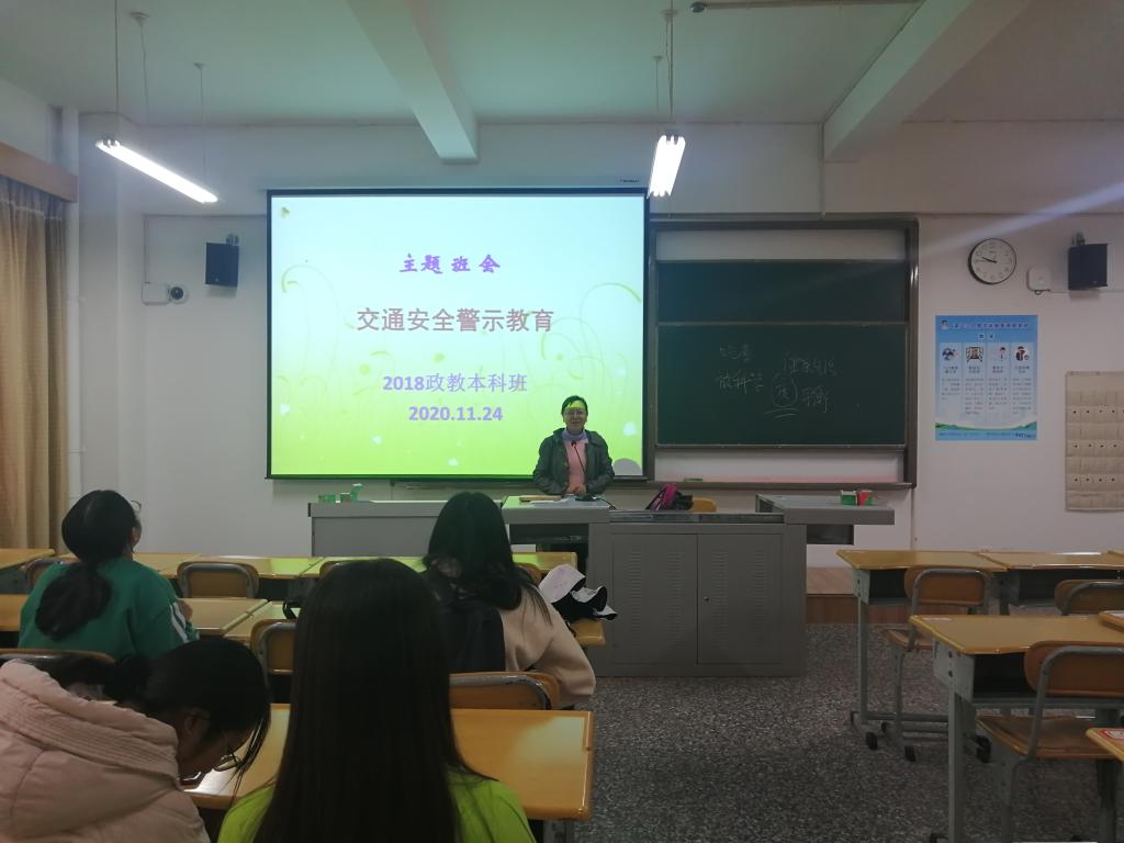 为了切实增强学生的交通安全防范意识,保障学生们的安全,2018级思想政治教育班于2020年11月24日10点在13教110室召开了“交通安全警示教育”主题班会,本次班会由班主任李桂仙老师主持召开,全体同学参加。