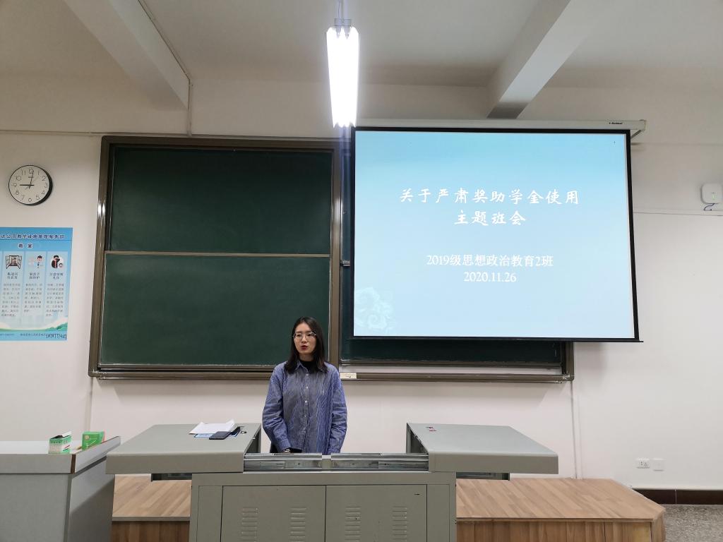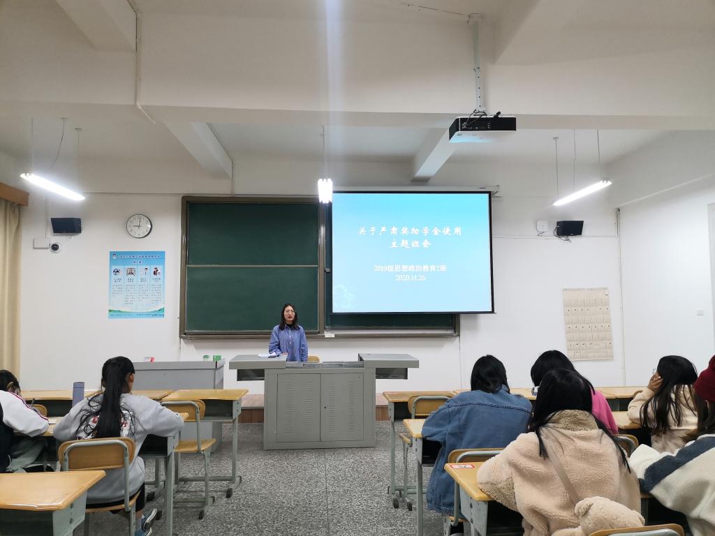 2020年11月26日21点,2019级思想政治教育2班在13教407室开展了“关于严肃奖助学金使用”的主题班会。本次班会由班长罗晓丽同学主持召开,全体同学参加。