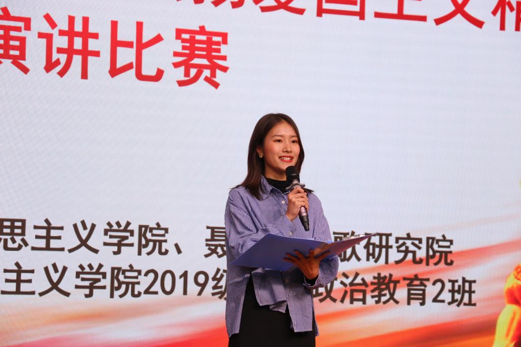 爱国是中华民族的优良传统,是中华民族生生不息,自立于世界民族之林的强大精神动力。为纪念 “一二·九”学生爱国运动85周年,进一步深化青年学生的爱国主义情怀,教育引导广大青年学生牢固树立听党话跟党走的理想信念,把青年学生强烈的爱国热情转化为勤奋学习,勇担使命,争当先锋的实际行动,马克思主义学院于2020年12月12日晚19点在大学生活动中心举行“纪念一二·九运动,弘扬爱国主义精神”主题演讲比赛。本次比赛由马克思主义学院主办,2019级思想政治教育2班承办,马克思主义学院院长赵永胜老师、副院长邱国成老师、党支部书记段妍智老师、团委书记何敏老师,以及数学与信息技术学院张远老师莅临现场指导。