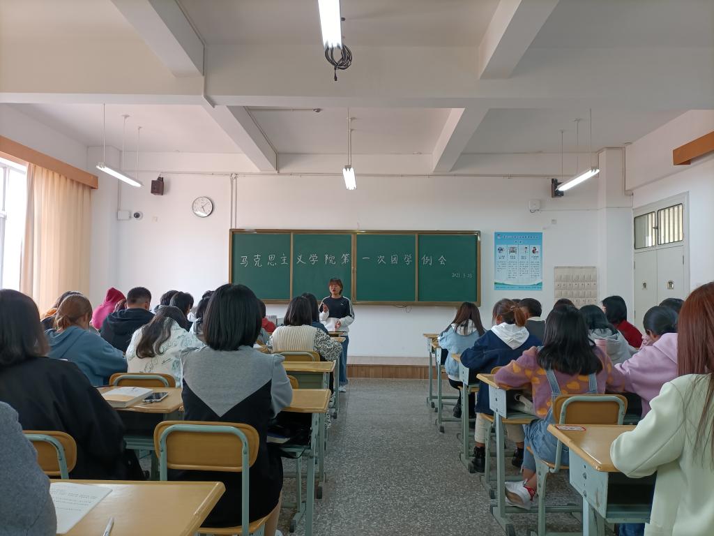 2021年3月23日17时,马克思主义学院下学期第一次团学例会在14教301室召开,会议由主席冯德康主持,全体团学成员参会。