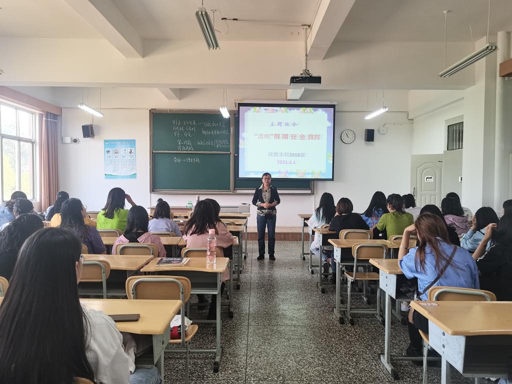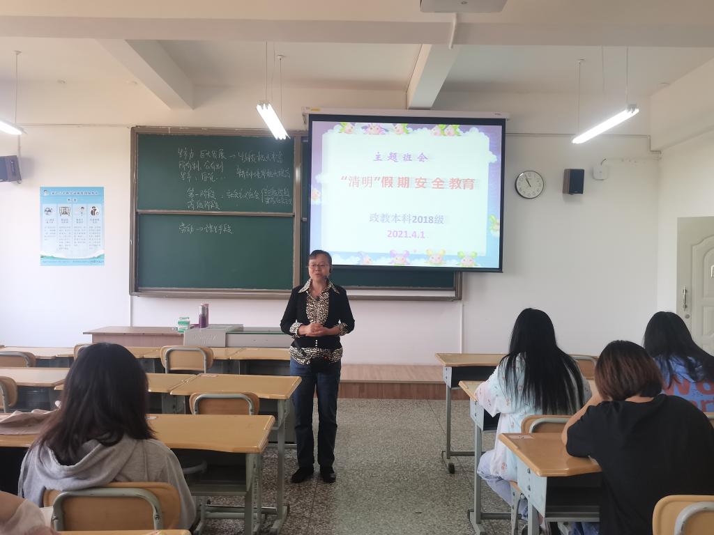 清明节是中华民族缅怀先人、祭祀祖先的传统节日。在清明节即将到来之际,马克思主义学院2018级思想政治教育班在班主任李桂仙老师的组织下于2021年4月1日在14教508室召开了清明节安全主题教育班会,18级政教班全体同学参加。
