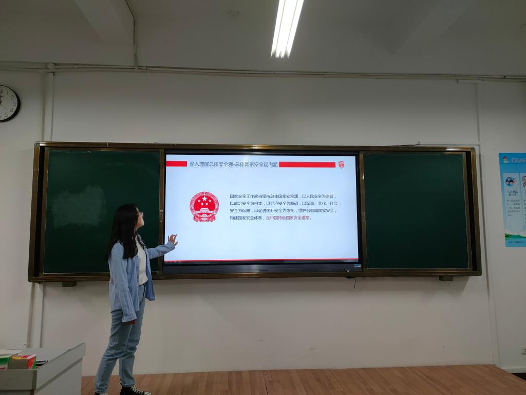 班会伊始,杨艳强调了总体国家安全观的重要性和必要性,为同学们深入了解总体国家安全观奠定了基础。其次,杨艳讲解了总体国家安全观的内涵,宣传了《国家安全法》、《反间谍法》等法律法规。班会最后,举行了以“国家安全”为主题的法律法规知识竞赛,进一步巩固了同学们的学习成果。