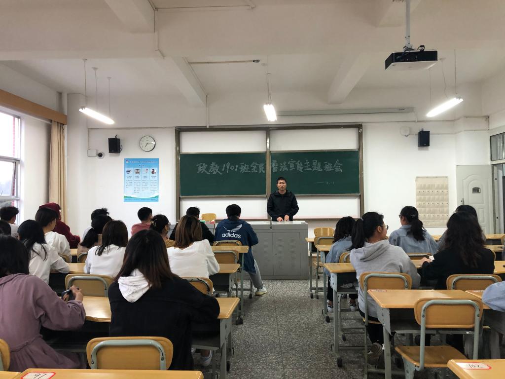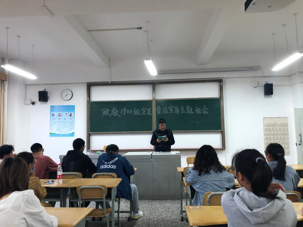 2021年4月15日将迎来第六个全民国家安全教育日。为持续加大总体国家安全观宣传力度,推动国家安全教育深入开展,2019级思想政治教育1班于2021年4月11日19时在13教110室开展了全民普法宣传主题班会。此次班会由班主任王锦涛老师主讲,全体同学参加。