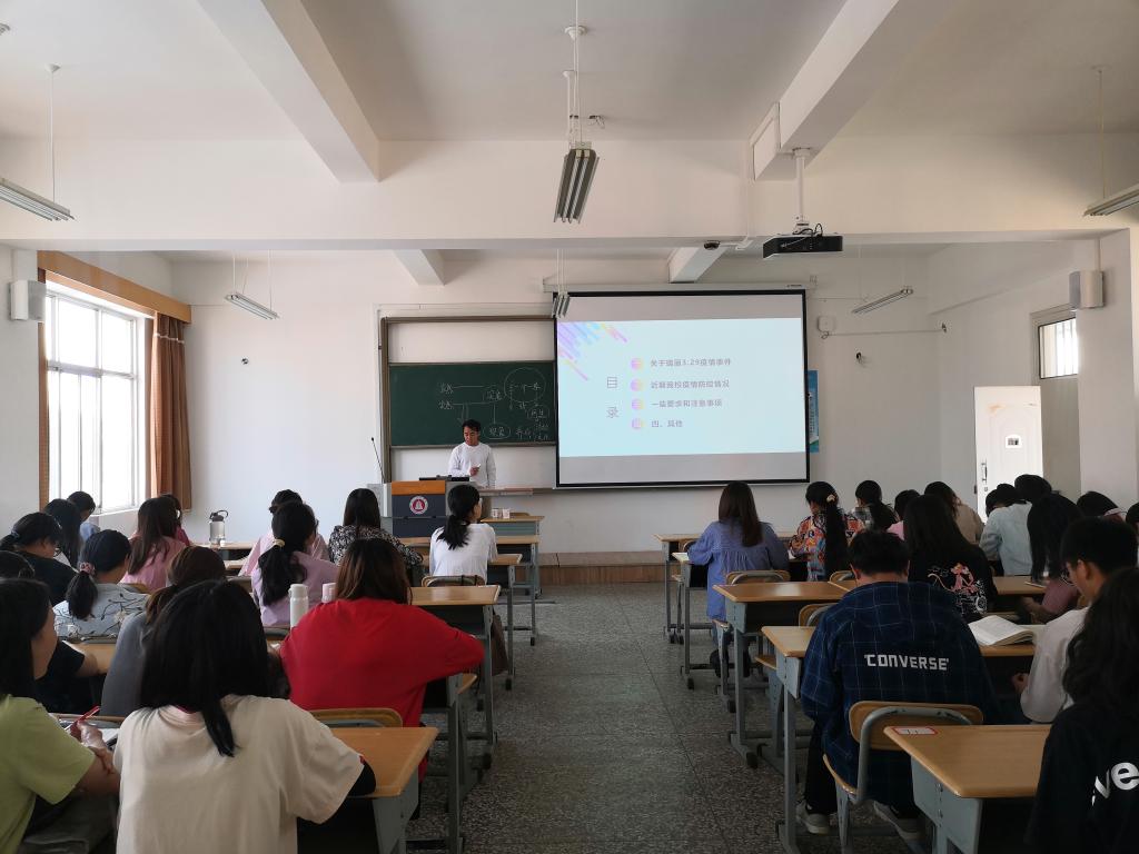 其次,周鑫老师说明了近期我校疫情防控措施。我校处于半封闭的状态,周末可扫码出校,坚持非必要不外出的原则。周鑫老师再次强调了不要随意攀爬出校,注意外出安全。最后,周鑫老师对一些注意事项补充说明,主要包括不得在网络上随意发表不实言论和不当言论,严格外出审批制度,积极自愿接种疫苗,近来天气炎热,希望同学们健康饮食、多加锻炼。
