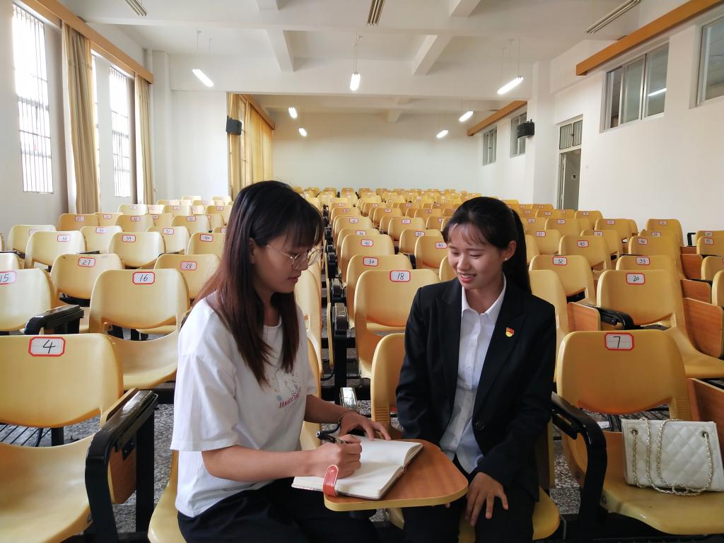 大学是一个培养高素质人才的殿堂,处于这个殿堂中的青年通过努力可以成为祖国建设的生力军,但是,学校毕竟和社会的环境有很大的差别。如何将我们在学校中学得的知识应用到我们的实际工作中去,如何让我们在学校获得的生活经验在社会中也照样适用,这是一门大的学问。然而,在学习先进典型的访谈活动中,我们可以获得很多宝贵的经验,帮助我们适应从学校向社会的过渡。对此,2021年4月19日在14教105教室开展了就业先进典型采访活动,对2017级思想政治教育班王明艳、杨治洋两位代表进行面对面采访。