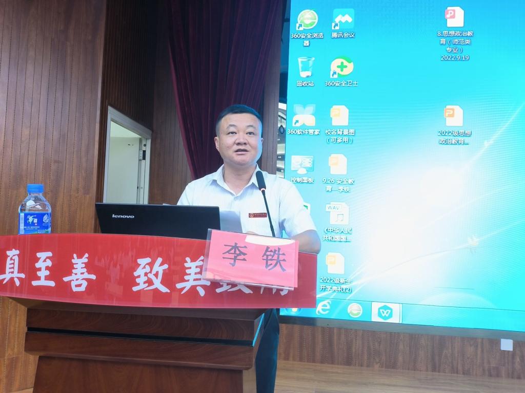 大会上,马克思主义学院副院长杨少英老师进行专业分析及学分制讲解,杨老师围绕“思想政治教育这个专业是什么”、“读这个专业能做什么”、“怎么样才能顺利毕业”这三个问题展开解读,让同学们对学分制有了进一步的了解,找到自己专业的定位,以及未来努力的方向。之后,学院党委副书记李铁进行安全教育,他分别从“个人安全”、“宿舍安全管理规定”、“网络安全”等九个方面展开论述,同时列举现实案例进行深入教育,以增强同学们的安全防范意识。