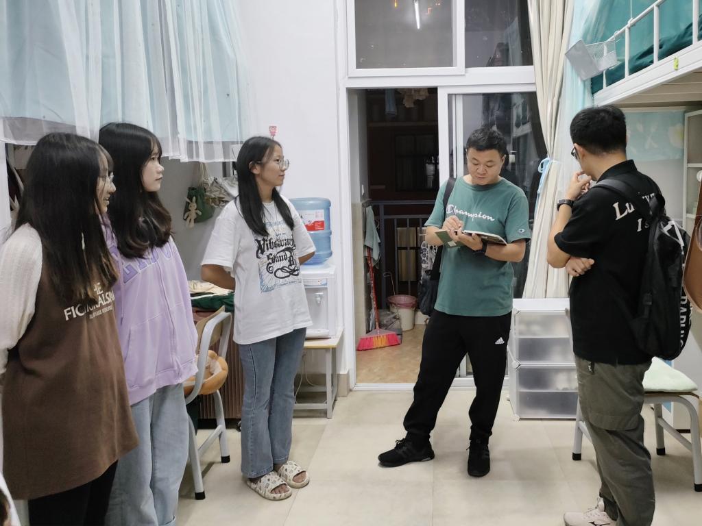 新学期伊始,为了解学院新生的住宿和生活情况,引导新生更好的融入校园学习生活,2022年10月7日晚,我院领导班子成员、辅导员、各班班主任到新生宿舍开展走访慰问活动,为同学们送上学院的温暖和关怀。