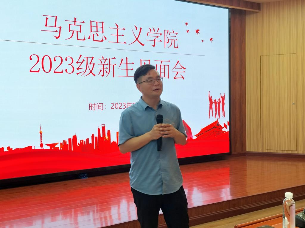 认识新伙伴,了解新环境。时遂营院长代表马克思主义学院全体师生对2023级新生的到来表示热烈欢迎和祝贺,并对新同学寄予了殷切的嘱托与期望。他希望同学们能利用好大学四年的时光,提前做好学业人生规划,勉励大家坚持锻炼身体,学好英语,树立考研目标。他指出,同学们要逐步转化思维方式,学会尊重他人的思维和价值方式,在学习中不断进步,在新的环境中成就更加优秀的自己,带着美好的憧憬和理想,迎接光辉灿烂的明天。
