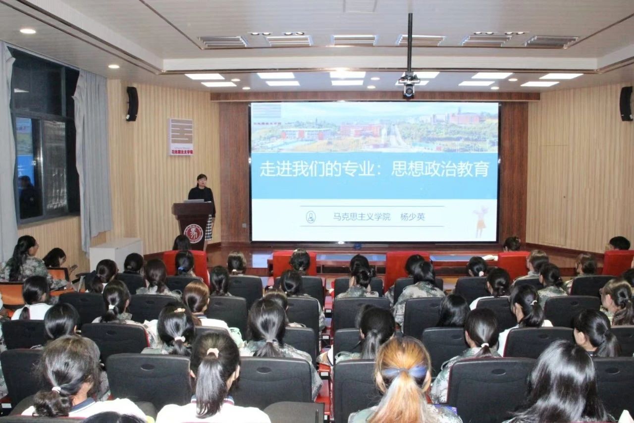 为了帮助2024级新生更清晰地认识自己的专业,并确立更为明确的学习目标,2024年9月1日20时,在马克思主义学院四耳报告厅杨少英副院长开展了一场“走进思政课:启迪智慧,塑造灵魂”的新生入学教育,与新生们共同进行了一场关于思想政治教育的深入讨论。