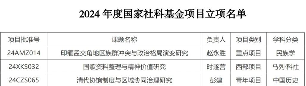10月15日,全国哲学社会科学工作办公室公布了2024年国家社会科学基金项目立项名单。玉溪师范学院马克思主义学院共有3个项目获批立项,其中重点项目1项(赵永胜教授),西部项目1项(时遂营教授),青年项目1项(彭建博士)。这是马克思主义学院近年来在申报国家级课题方面取得的新突破,充分展现了学院教师久久为功、厚积薄发的科研实力。