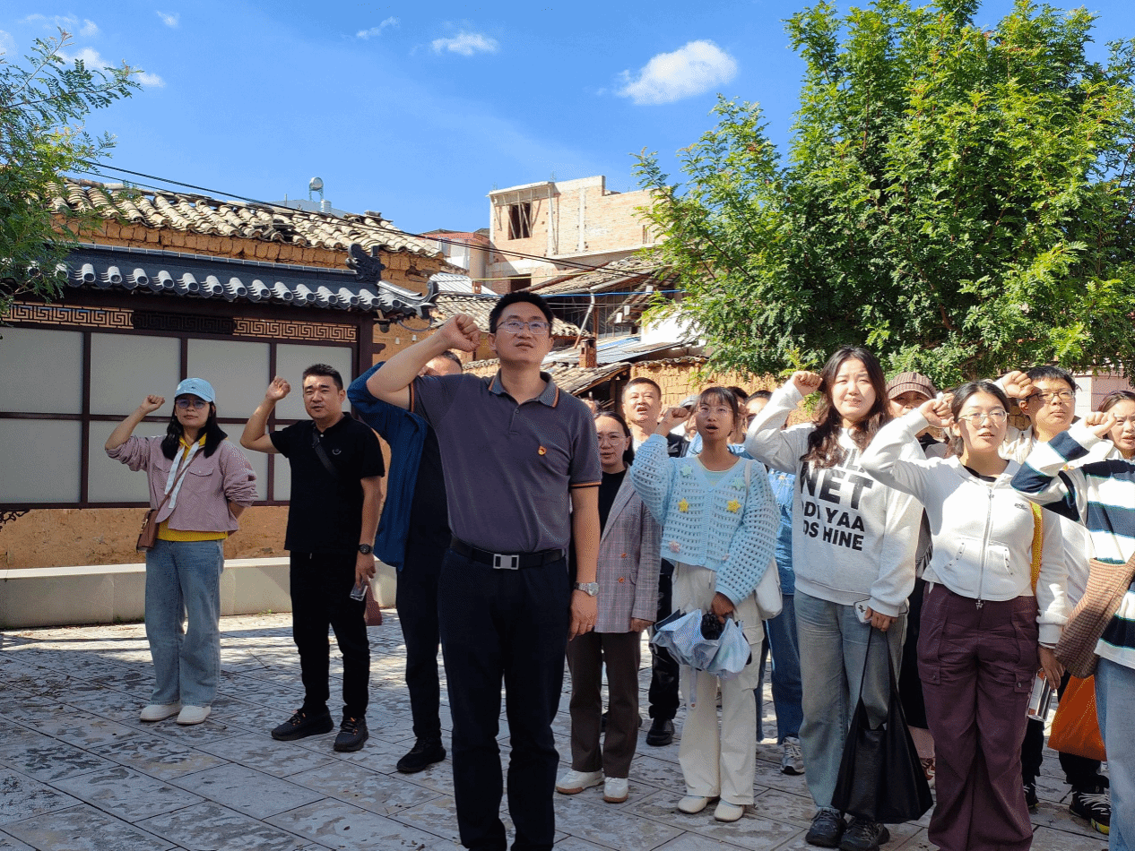 为深入学习贯彻党的二十届三中全会精神,进一步加强爱国主义教育,弘扬民族精神,传承红色基因。10月25日,马克思主义学院师生党员50余人赴通海县马克昌故居、兴蒙乡民族团结示范点开展“寻访红色史迹 传承红色基因 ”学习党的二十届三中全会精神主题党日活动。