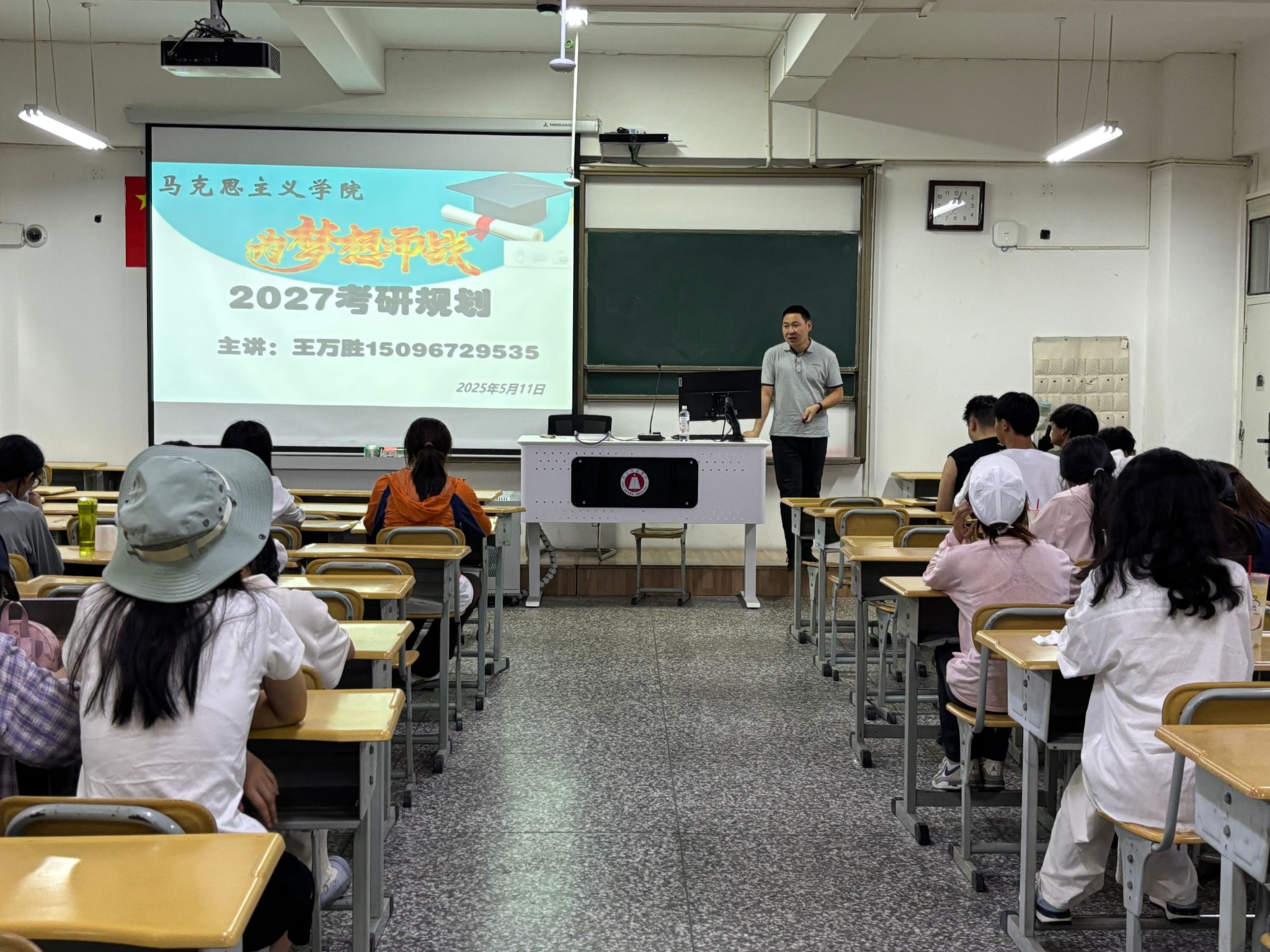 为帮助2023级学子明确考研目标,科学规划备考,5月11日晚19:00,马克思主义学院于13教110室举行了2023级考研动员会暨考研启动仪式。本次活动特别邀请了资深考研指导教师王万胜老师主讲,2023级全体同学参与。
