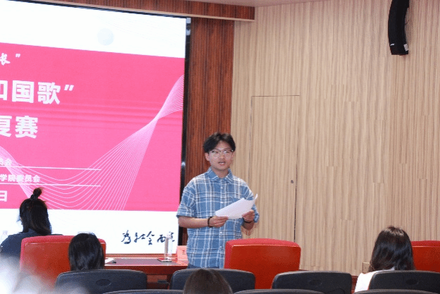 为纪念中国人民抗日战争暨世界反法西斯战争胜利80周年,创新阐释“聂耳和国歌”的精神内涵,马克思主义学院于5月10日9时在四耳报告厅举行“我和国歌”演讲比赛复赛。本次比赛由聂耳和国歌研究院办公室主任靳明珠老师、聂耳和国歌讲习团团长郭昕瑶和全国大学生普通话大赛“二等奖”获得者王强同学担任评委,2023级、2024级的部分学生参与。