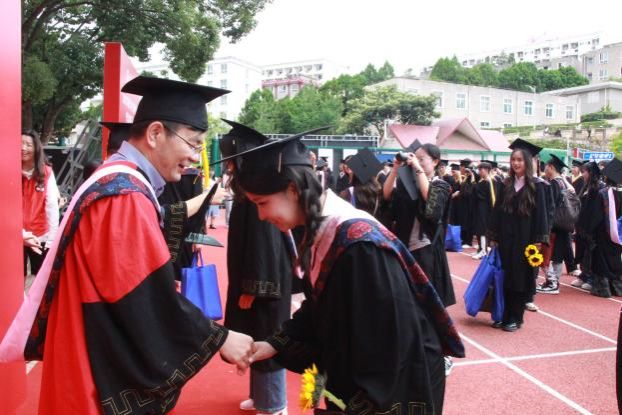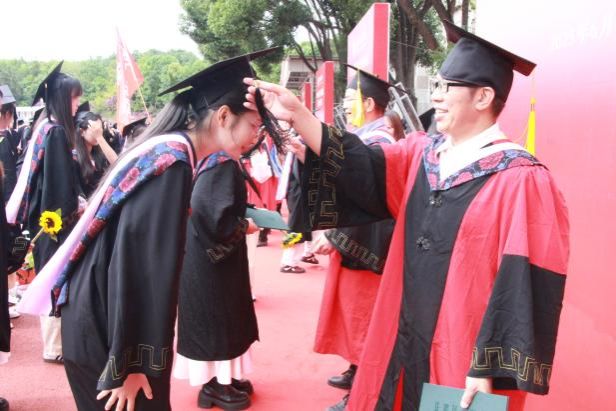 拨穗瞬间,青春定格。帽穗自右至左轻轻拂过,象征着求学生涯的圆满落幕与新征途的昂首启程。鞠躬、拨穗、握手、合影——导师的谆谆教诲与学子的拳拳之心,在此刻交织成永恒的记忆。昔日的“青穗”已蜕变为“金芒”,带着智慧与勇气,迈向山海。