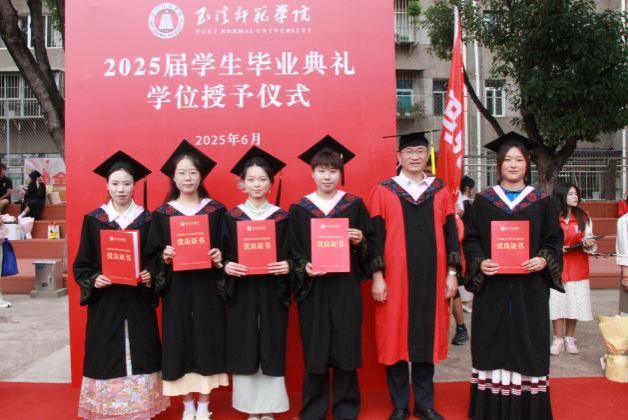 6月19日,玉溪师范学院隆重举行2025届毕业典礼暨学位授予仪式。马克思主义学院的分会场,院长时遂营、党委书记罗辉、副院长邱国成、彭建博士为毕业生们拨正流苏,祝福启程。